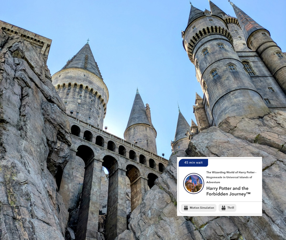 Last but not least, we have Harry Potter and the Forbidden Journey™, which gives you an experience before you even step onto the ride’s platform. It takes you inside of the infamous Hogwarts™ castle to see all kinds of magical wonders and hidden gems from the films. This attraction normally has lower wait times because its design offers faster loading and unloading of the ride vehicles than some of the others throughout Universal’s theme parks. Even though you may generally see lower wait times here, it’s always beneficial to have a helping hand from your Express Pass to add more time for extra fun to your day. Our journey through the castle queue and the time it took to complete and exit the ride was a mere 13 minutes, while the posted wait time was 45 minutes.