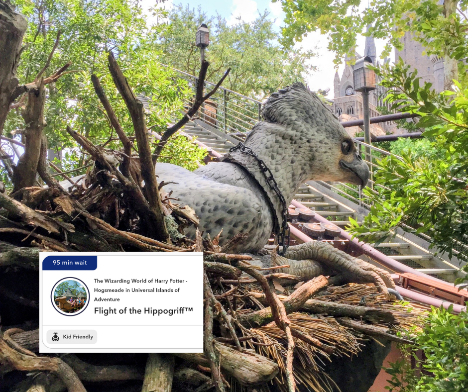 Another fun rollercoaster inside The Wizarding World of Harry Potter™ is the Flight of the Hippogriff™. Take flight on the back of a Hippogriff with this fun ride that takes you all around the pumpkin patch and past Hagrid’s hut. Even though this attraction only reaches speeds of up to 29 mph, this kid-friendly adrenaline rush is still fun for the whole family. The standby line had a wait time of a whopping 95 minutes when we entered, but we were done and off the ride within 32 minutes with our passes.