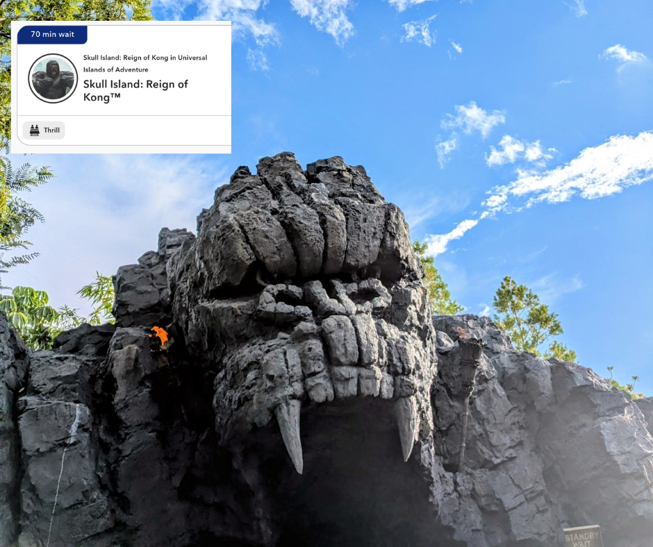 Switching gears to a different style of ride, Skull Island: Reign of Kong™ is a trackless, motion simulation vehicle-style experience that takes you on an expedition through the jungle, caves, and temple ruins. There will be several creatures throughout your journey who battle with each other on Skull Island, so keep an eye out because some of those fight scenes may just be enhanced with 4-D special effects. We entered the queue for this ride when it had a posted wait time of 70 minutes, and despite it being one of the experiences with a longer duration, we finished it in just 28 minutes.