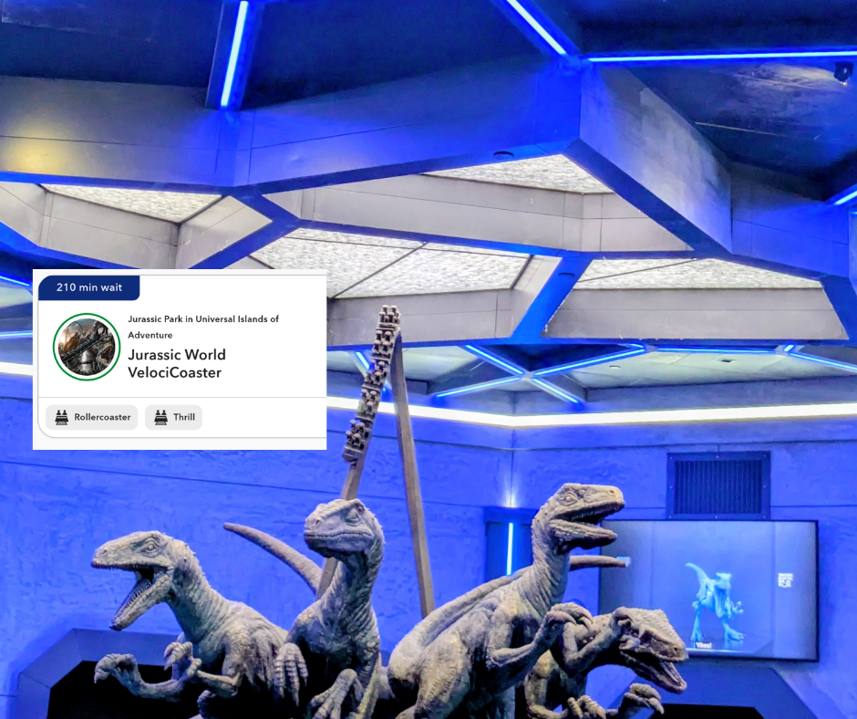 Jurassic World VelociCoaster is one of Islands of Adventure’s most popular rides. It’s a thrilling roller coaster with two intense launches, four inversions, and top speeds of 70 mph. It is so intense that, for safety measures, you are required to pass through a metal detector for the team members to confirm that you have secured all loose articles and stowed them inside the provided lockers before enjoying the ride. This is the ultimate ride for thrill-seekers, so if that’s you, this ride needs to be at the top of your must-do list. Since this coaster is so popular, expect wait times to be generally high throughout the year. When we got in line to ride, the original standby wait time was at 210 minutes, or 3.5 hours. With our Express Pass, we were able to save 170 minutes from the start of the line to getting off the ride. That is almost 3 hours saved!
